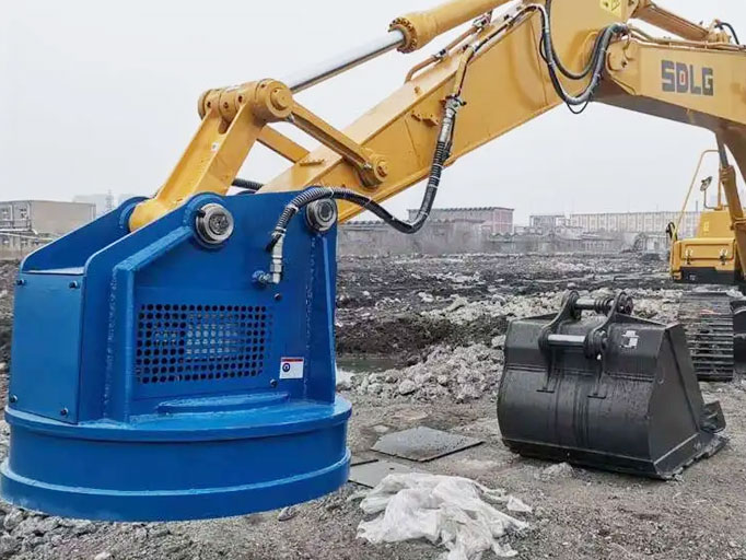 El imán hidráulico para excavadora utiliza motores hidráulicos para generar electricidad, no se requiere una instalación adicional de generadores, lo que supone un ahorro significativo de costos.